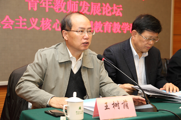 论坛全体代表合影 12月28日,受北京市委教育工委委托,金宝搏官网和熊晓琳名师工作室举办了“首届北京高校思想政治理论课青年教师发展论坛(2014)”。来自中国社会科学院、中国人民大学、188BET金宝搏官网等高校和研究机构的知名专家学者,首都高校100多名思想政治理论课青年教师,以及《人民日报》、《光明日报》、《中国教育报》、《思想理论教育导刊》、《思想教育研究》、《北京教育(德育)》等报刊媒体共计120余人参加了论坛。 论坛开幕式现场 教育部社科司副司长徐艳国,北京市委教育工委常务副书记张雪,我校党委副书记王炳林以及相关领导出席论坛并致辞。开幕式由金宝搏官网院长王树荫主持。 王树荫院长主持开幕式 教育部社科司徐艳国副司长在致辞中对广大青年思政课教师提出了明确的要求和期望。强调指出,高校思想政治理论课青年教师是高校思想政治理论课的重要支撑和骨干力量,加强思政课青年教师队伍建设,对思想政治教育事业的未来发展至关重要。为此,思想政治理论课青年教师要做到“三问”和“三了解”。 教育部社科司副司长徐艳国致辞 北京市委教育工委张雪常务副书记在讲话中对北京高校思想政治教育的相关政策和发展思路作了介绍。她对188BET金宝搏官网和熊晓琳名师工作室的工作给予了肯定,并指出各高校和名师工作室在北京思想政治理论课教育教学及青年教师队伍建设中做出了积极贡献。 北京市委教育工委常务副书记张雪致辞 党委副书记王炳林副书记结合习近平总书记在2014年教师节期间视察188BET金宝搏官网所发表的重要讲话,从思政课教学的角度阐释了有理想信念、有扎实学识、有道德情操和有仁爱之心的重要性,并结合自身30多年的教学经验,对怎样讲好思政课,给现场青年教师作了精彩的讲解。 我校党委副书记王炳林副书记致辞 中国社会科学院马克思主义研究院辛向阳、中国人民大学188BET金宝搏官网王向明两位特邀专家分别作了《培育和践行社会主义核心价值观的三个基本问题》和《关于提高思政课教学实效的若干思考》的主题报告。阐释了社会主义核心价值观的重要性,分析了思政课教育教学方法的规律和原则。 在青年教师现场教学演示环节,来自188BET金宝搏官网、北京工业大学、首都师范大学、中央财经大学四所高校188BET金宝搏官网的四名青年教师,分别围绕“原理”、“基础”、“纲要”、“概论”四门课程做了教学演示。名师工作室主持人熊晓琳对现场教学演示做了精彩点评。 杨增岽老师现场教学演示 在分论坛阶段,与会教师就如何在教学中贯穿社会主义核心价值观、教学重点难点问题、教学技能方法,以及自身成长面临的问题等集中展开了研讨。 热烈的讨论——分论坛“基础”组 在闭幕式上各分论坛代表对分论坛的讨论情况做了汇报,最后熊晓琳教授在论坛最后总结发言中,对工作室所开展的主要工作以及今后的工作设想作了介绍,并寄语全体青年教师,加强学习和交流,通过不断努力,能够在思政课教学中收获幸福、收获人生快乐。 熊晓琳教授论坛总结发言 本次论坛是“北京高校思想政治理论课青年教师发展论坛”的第一届,主题聚焦于社会主义核心价值观的教育教学问题。按照北京市委教育工委的部署要求,北京高校思想政治理论课青年教师发展论坛将作为长效机制,依托金宝搏官网熊晓琳名师工作室,每年举办一次,成为北京高校思想政治理论课青年教师相互交流、相互学习、共同进步的优质发展平台。 团结就是力量——全体会务人员 (熊晓琳工作室供稿)