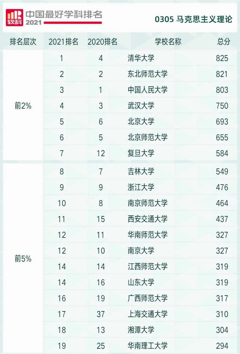 2021软科中国最好学科排名——马克思主义理论 发布时间: 2021-10-26